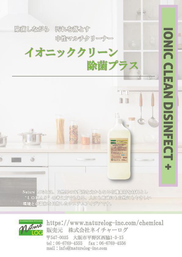 イオニック クリーンに遊離塩素、カチオン活性剤を配合し安定化させ、除菌能力と洗浄能力を両立させた新しい除菌洗浄剤です。インフルエンザ等のウィルスやO157等の大腸菌群の除菌を行いながらマイナスイオンの特性で汚れを除去できる中性洗剤です。
